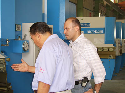 2005年6月23日上午,位于沙特阿拉伯首都利雅得市的沙特納美拉空壓機廠廠長阿貝德·塔巴拉等一行來我公司參觀考察,阿貝德先生此行主要來考察我公司折彎機、剪板機產品,考察中對我公司產品外觀、結構均表示滿意并與我公司達成進一步合作的意向!