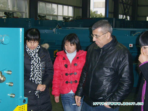 在我公司總經理等的陪同下,Mr. Reaf Kadmaney參觀了我公司的成品車間。對我公司機器的外觀及質量表示出了極大的贊賞。之前有關價格方面的疑問也隨之迎刃而解。我公司一直強調產品的質量,對自身的產品有著很高的定位。無論是出口或者內銷的機器,在產品質量方面我們都會做到一視同仁,不會出現所謂的“一分價錢一分貨”的現象。