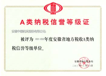 根據(jù)《安徽省地稅系統(tǒng)納稅信譽等級管理試行辦法》(皖地稅[200]66號)等有關規(guī)定,稅務部門按照納稅人申請、主管地稅機關對納稅人2001年、2002年及2003年稅務登記、納稅申報、稅款繳納、財務管理、納稅資料報送、發(fā)票管理等方面的嚴格審核,安徽中德機床股份有限公司被評為:2001—2002年度安徽省地方稅收A類納稅信譽等級單位!