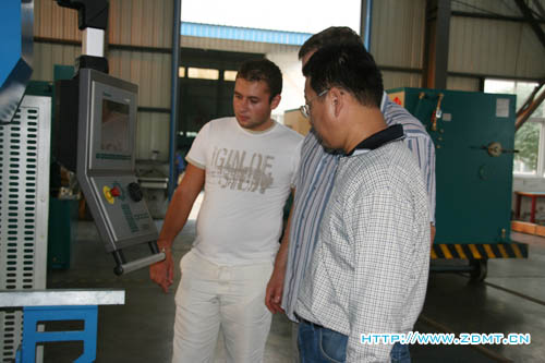 一進我們的生產(chǎn)車間,外國友人就被正在運轉(zhuǎn)中的機器吸引住了,在參觀了機器的成產(chǎn)流程后,他們還不住地向旁邊的技術(shù)工人提出問題,在得到了充分的回答后不住地點頭稱道,臉上也露出了贊許的目光,之后,公司領導將他們引領至成品車間,一排排嶄新的機器整齊的排列在車間里,干凈的地板,先進的設備,無不透露出我公司在產(chǎn)品生產(chǎn)的各個環(huán)節(jié)所做的努力和成績。