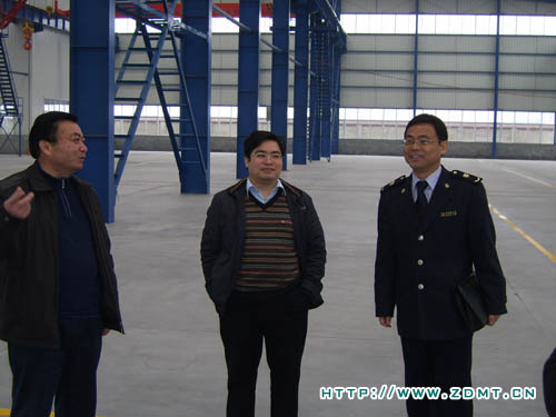 在公司相關領導的陪同下,出入境檢驗檢疫局一行來到中德成品車間。在這里,中德的產品一行行整齊地擺列著,儼然是整裝待發的士兵。當程光前一行聽說這些機器即將被運往世界各地時,他們表示感到非常的高興,為中德的產品能夠取得這樣的成績而欣慰。在新建成的裝配車間,局長程光前等認真聽取了我司對于出口現狀及前景規劃的介紹,對我司出口工作做出了充分的肯定。